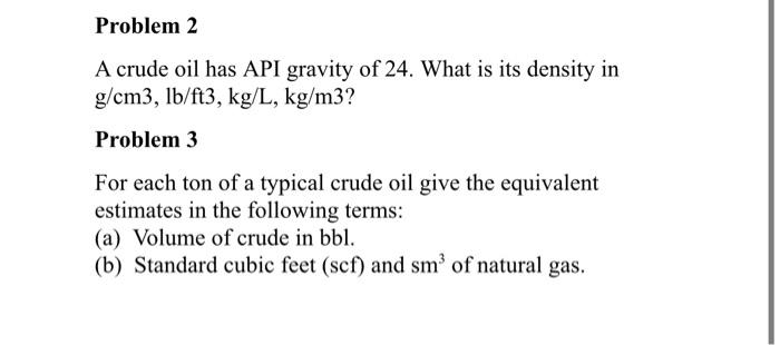 Solved Problem 2 A Crude Oil Has Api Gravity Of 24 What Is Chegg Com
